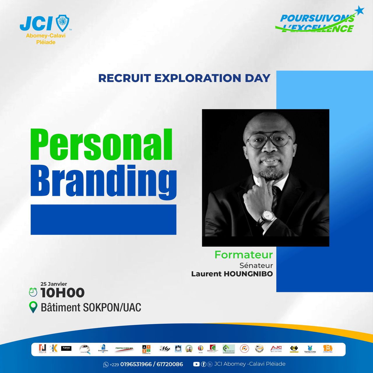 La Jeune Chambre Internationale Abomey-calavi Pléiade La JCI est une organisation, à but non lucratif, de jeunes citoyens actifs de 18-40 ans affilié à la JCI Bénin, elle-même affiliée à la la JCI. Nous partageons la conviction que, pour créer un changement positif, des mesures collectives s’imposent pour nous améliorer nous-mêmes et le monde qui nous entoure. A cet effet nous menons des projets communautaires et des formations, afin d’impacter d’abord nos membres et ensuite la communauté plus spécifiquement l’arrondissement de Kpanroun.